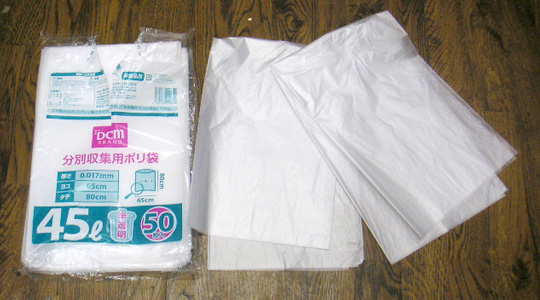 市販の透明ゴミ袋など、しっかりしたビニール袋を二重にします。 -
