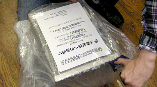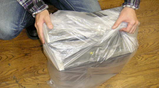 ダンボールが用意できない場合には、以下のビニール袋を使った梱包か、クロネコヤマトのパソコン宅急便をご利用下さい。